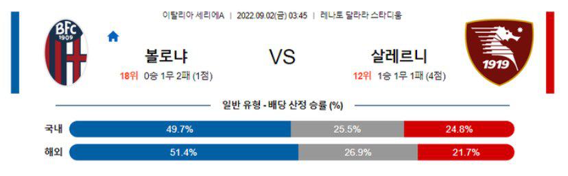 열람중 【세리에A】 9월2일 볼로냐 vs 살레르니타나 2022.09.01 256