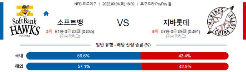 언더를 점치는 것이 좋을 듯 하다. 소프트뱅크가 주력 타자들이 빠진 직후의 타격 성과는 아주 인상적이었지만, 결국 야나기타 등이 빠진 공백을 서서히 실감하는 중. 레이의 홈 성적을 고려하면 지바롯데도 쉽게 타격 성과를 이어가기에는 어려울 것이다. 다만 투수전으로 이어질 가능성이 높은 경기에서 한 점의 가치가 상당히 높다는 점을 고려한다면 미마의 피안타율이 꾸준히 높게 형성되고 있다는 것은 승부에 중요한 역할을 할 수 있다. 소프트뱅크의 승리를 점치는 것이 나아보인다.