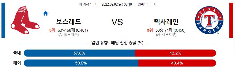 열람중 9월 2일 08:10 MLB 보스턴 : 텍사스 MLB분석 2022.09.01 260