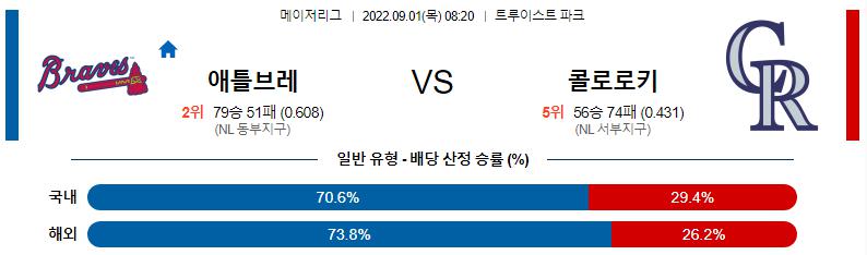 카일 라이트의 투구는 좋을때의 그 모습으로 확실히 돌아왔다. 콜로라도 상대로 좋은 투구를 보여줄수 있을듯. 반면 펠트너는 원정에서 부진한 문제를 너무 자주 노출하고 있고 전날 부진하긴 했어도 원래 애틀랜타의 타선은 홈 경기에서 상당히 강점을 가지고 있습니다. 전력에서 앞선 애틀랜타 브레이브스가 승리에 가까이 있습니다.