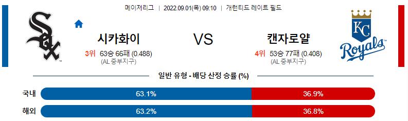 원정에서 부진한 부비치인데 화이트삭스는 좌완 투수 상대로 꽤 강점을 가지고 있는 팀입니다. 즉, 부비치가 홈에서 무너진 이유가 있는것. 게다가 최근의 랜스 린은 확실히 투구 내용이 좋아지고 있는 편이고 캔자스시티의 타선은 원정에서 나쁜쪽으로 기복이 심한 편입니다. 캔자스시티의 불펜이 힘을 발휘하는건 리드할때다. 선발에서 앞선 시카고 화이트삭스가 승리에 가까이 있습니다.