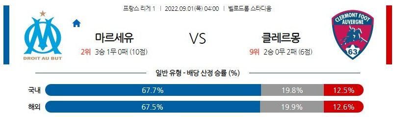 【리그앙】 9월1일 마르세유 vs 끌레르몽