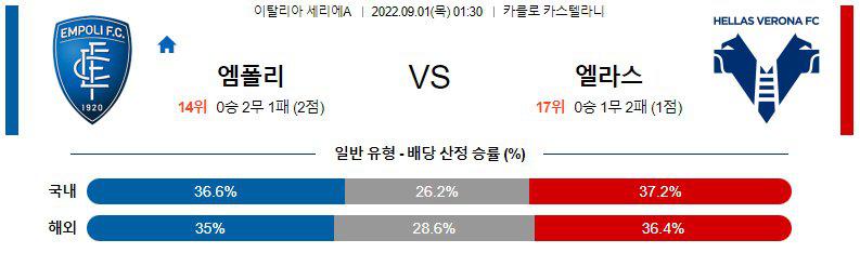 【세리에A】 9월1일 엠폴리 vs 헬라스베로나