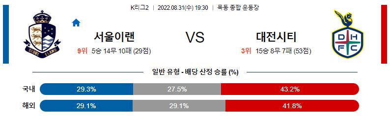 K리그2 8월 31일 19:30 서울 이랜드 FC : 대전 시티즌