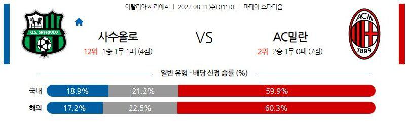 양 팀의 최근 5차례 맞대결 주소모두 다득점 페이스가 나온 점까지 더한다면 이번 일정도 오버(3.5 기준) 가능성이 높겠다. 또한 AC밀란은 이번 시즌 꽤나 공격적인 기조로 꾸준히 득점을 터뜨리고 있다. 특히나, 토날리(MF)와 지루(FW)가 선발 라인업에 합류하며 양질의 패스 공급도 가능해진 상황. 심지어 상대 팀 사수올로는 적극적인 기조로 시즌 초반 수비 쪽 불안감을 선보이고 있다. 이번 일정도 AC밀란의 승리가 예상된다.