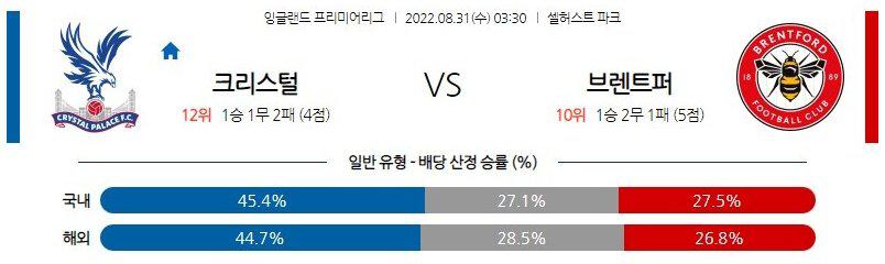【EPL】 8월31일 크리스탈팰리스 vs 브랜트포드