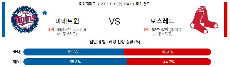 8월 31일 08:40 MLB 미네소타 : 보스턴 MLB분석