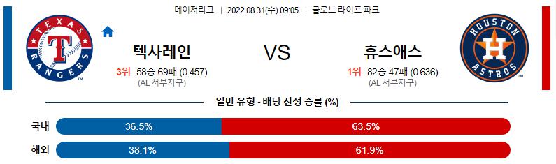 프램버 발데즈(13승 4패 2.65)가 시즌 14승에 도전한다. 25일 미네소타와 홈 경기에서 7이닝 2안타 1실점의 호투로 승리를 거둔 발데즈는 8월 한달간 4전 전승 1.98의 압도적 투구를 이어가는 중입니다. 특히 12일 텍사스 상대로 홈에서 7이닝 4안타 무실점 승리를 거두었는데 변수가 있다면 최근 원정에서 1~2점 정도는 더 실점을 할 가능성이 있다는 점입니다. 월요일 경기에서 볼티모어의 투수진 상대로 브레그먼의 홈런 포함 3점을 올리는데 그친 휴스턴의 타선은 전체적으로 타격이 침체기에 있음을 부정하기 어려운 편입니다. 하지만 시리즈마다 기복이 있는 미묘한 특성, 그리고 텍사스 상대로 강점이 있는 타선의 특성상 반등의 여지는 많은 편. 벌랜더의 조기 강판 이후 6이닝을 1실점으로 막아낸 불펜은 텍사스의 그것보다 우위를 점유 중입니다.