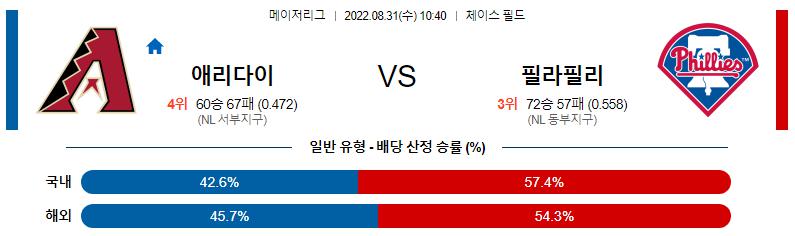 타선 폭발을 앞세워 7점차 역전극을 만들어 낸 애리조나 다이아몬드백스는 잭 갤런(9승 2패 2.66)이 시즌 10승 도전에 나선다. 25일 캔자스시티 원정에서 6이닝 3안타 무실점의 호투를 하고도 불펜이 승리를 날려버렸던 갤런은 8월 한달간 4승 0.82라는 압도적 투구를 이어가는 중입니다. 하지만 홈 경기 투구가 살짝 흔들리는 문제를 가지고 있는데 6월 11일 필라델피아 원정에서 1.2이닝 6실점 패배를 당한 복수가 이번에 가능하느냐가 최대의 관전 포인트다 .전날 경기에서 필라델피아의 투수진을 무너뜨리면서 개럿의 쐐기 홈런 포함 13점을 올린 애리조나의 타선은 상대의 제구난과 실책을 확실하게 잡아낸 집중력이 승리를 불렀다고 해도 과언이 아니다. 2이닝 연속 타자 일순이 그 증거. 범가너 강판 이후 5.1이닝을 무안타 무실점으로 막아낸 불펜은 최근 의외로 제 몫을 해내고 있습니다.