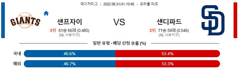 8월 31일 10:45 MLB 샌프란시스코 : 샌디에이고 MLB분석