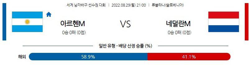 이란을 상대로 풀세트 끝에 패배했다. 공격력은 그다지 좋지 않았다. VNL에서 활약했던 선수들이 아닌 새로운 선수들이 출전했다. 콘테(OH)가 20득점을 기록했고 비센틴(OH)이 15득점을 올렸다. 로저(MB)가 19득점을 올리며 활약했다. 성공률이 매우 낮은 선수들은 없었지만 콘테의 성공률은 29%로 낮았다. 지난 경기가 풀세트 경기였기에 득점력으로는 평가하기 어렵다. 아르헨티나가 지난 경기에서 기록한 범실이 52개나 되기 때문에 범실을 줄이는 것을 우선으로 해야 한다.