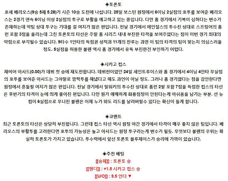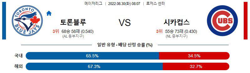 【MLB】 8월30일 토론토 vs 시카고컵스