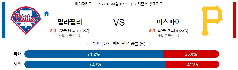 8월 29일 02:35 MLB 필라델피아 : 피츠버그 MLB분석