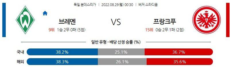 【분데스리가】 8월29일 베르더브레멘 vs 프랑크푸르트