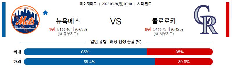 어제 배싯이 5이닝 무실점 호투를 펼쳐주었지만 기븐스가 끝내 동점을 허용하고 말았다. 그러나 메츠 타선도 집중력을 발휘하면서 9회말 끝내기 승리를 거두었다. (7-6) 그리고 오늘 3차전이 펼쳐지게 되는데 오늘도 승리는 메츠가 기록할 것으로 예상된다. 콜로타선이 좌완에 대한 약점은 없지만 워정에서 평균 3.2득점만을 내는 팀입니다. 또한 오늘 콜로선발 프리랜드 역시 최근 들어 본인의 주구종에 대한 문제를 지속적으로 드러내고 있는 상황!!! 따라서 오늘 경기는 메츠 사이드로 봐야하는 경기가 되겠습니다.