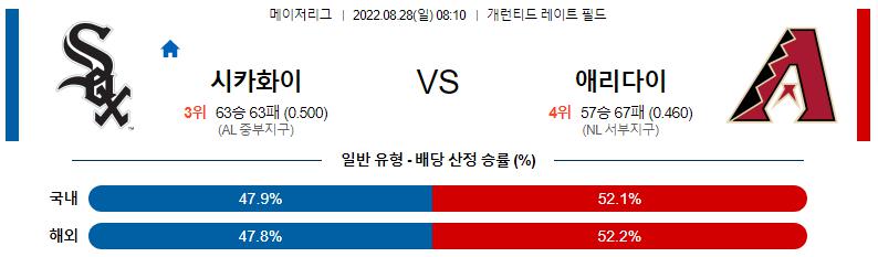 어제 애리조나사 7-2 승리를 거두었다. 큐에토가 무너지고 말았고 시삭스 타선도 좋지 못했던 경기였다. 그리고 오늘 2차전이 펼쳐지게 되는데 오늘도 승리는 애리조나가 기록할 것으로 예상된다. 최근 득점력에서도 애리조나 타선이 힘을 내어주고 있고 오늘 선발 켈리역시 흐름이 매우 좋은 상황!! 따라서 오늘경기는 애리조나 사이드로 보셔야 되겠습니다.