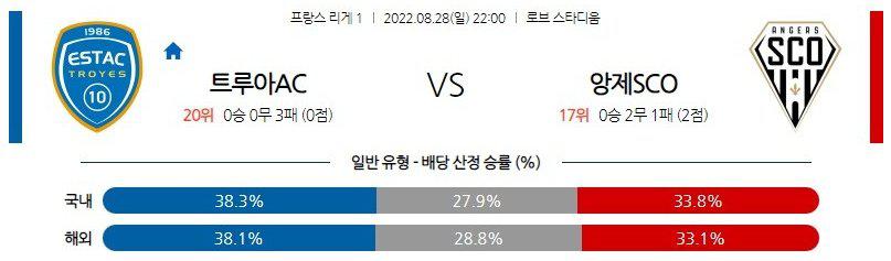 무승부 / 언더(2.5 기준)를 추천한다. 양 팀은 주소모두 부진한 스타트를 기록하며 공-수 전반적으로 이렇다 할 성과를 기대하긴 어렵다. 트루아는 발데(FW), 타르디유(CAM) 둘에게 의존하는 단순한 ‘공격 플랜으로 ’좋은 성과를 기대하긴 무리인 상황, 또한 앙제는 여전히 팀 전반적인 조직력 문제가 개선되지 않은 모습이다. 양 팀 주소모두 저조한 경기력과 배당을 고려할 때 무승부 가능성이 적절한 선택지가 되겠다. 다만 최근 공격진의 페이스와 수비적인 전술 기조를 근거로 언더 접근은 필히 겸하자.
