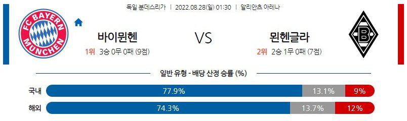 최근 5년 내 바이에른 뮌헨을 상대로 가장 이상적인 대응을 하는 전력이 바로 묀헨글라트바흐다. 중원에서의 힘 vs 힘 싸움이 연출되더라도 묀헨글라트바흐가 크게 문제를 드러내지 않을 가능성이 높다. 기본적으로는 난투극 양상의 진흙탕 싸움이 될 가능성이 높다는 점에서 오버(3.5 기준)를 추천하지만, 고배당을 노린다면 무승부 접근도 해볼 만한 도전이겠다.