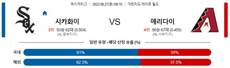 8월 27일 09:10 MLB C.화이트삭스 : 애리조나 MLB분석