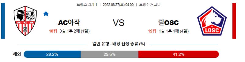 프랑스 리그앙 8월 27일 04:00 AC 아작시오 : 릴 OSC