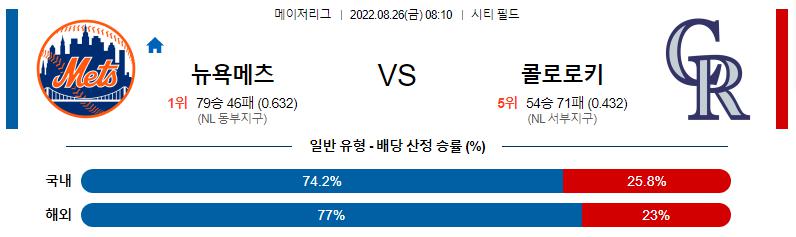 메츠의 승리를 본다. 마르케스와 프리랜드등 상위선발이 나서도 어려운 메츠 원정에서 펠트너를 내세워 디그롬을 만나야 한다. 복귀 후 최고의 피칭을 여전히 하는 디그롬이 나서는 메츠가 압도적인 선발의 우위가 있습니다. 또, 메츠는 상하 좌우를 가리지 않고 타선이 득점권에서 생산력을 보이기에 에이스에게 득점 지원을 해줄 것입니다. 콜로라도의 빈타 속에 언더 경기다.