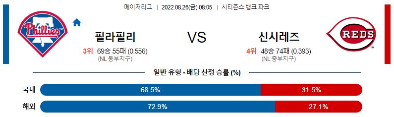 필라의 승리를 본다. 던이 신시가 기대하는 투수로 기대를 모으고 있지만 필라의 에이스 놀라의 옆에 설 수는 없다. 리그에서 가장 삼진 능력이 빼어난 투수인 놀라는 팀이 기존 로테이션보다 하루의 휴식일을 더 줬기에 더 좋은 몸상태로 마운드에 오를 수 있습니다. 또, 필라 타선이 이번 시리즈에 꾸준히 득점을 만드는 점도 감안해야 한다. 신시의 빈타를 보기에 언더 경기다.