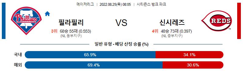 필라의 승리를 본다. 놀라에게 하루 더 휴식을 주기 위해 필라가 산체스 카드를 내밀었는데 산체스는 좌완의 강점이 있는 투수다. 90마일 중반의 속구를 뿌릴 수 있고 커브도 결정구로 가치가 확실하다. 애쉬크래프트가 좋은 피칭을 하지만 신시는 불펜이 약하기에 그 이후를 책임질 투수가 없다. 타선에서도 리얼무토와 카스테야노스가 제 역할을 해주는 필라가 승리할 것입니다. 신시의 빈타 속에 언더 경기다.