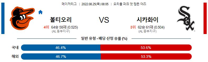 8월 25일 08:05 MLB 볼티모어 : C.화이트삭스 MLB분석