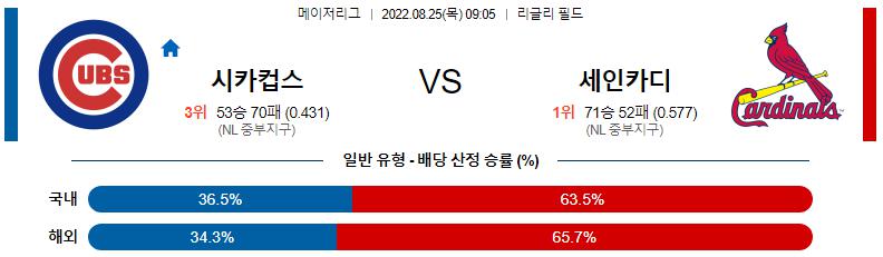 8월 25일 09:05 MLB C.컵스 : St.루이스 MLB분석