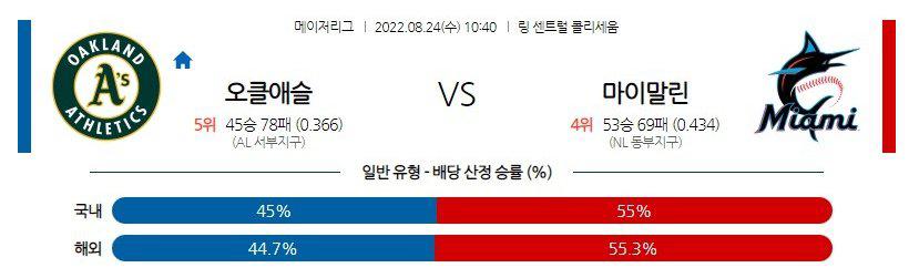 【MLB】 8월24일 오클랜드 vs 마이애미