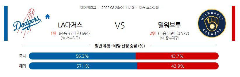 다저스의 승리가 유력해보이는 경기. 번스의 다저스 상대 전적이 상당히 좋지 못한데, 지난 경기에서도 승리 투수가 되기는 했지만 직전 경기들보다는 피안타율이 늘어나는 등 확실히 고전하는 양상이 역력했다. 곤솔린도 후반기 잠시 부진했던 기미가 있었지만 이제는 안정감을 상당부분 찾은 상태. 두 선수의 퀄리티와 전반적으로 다저스와 밀워키의 최근 타격 성과가 뚜렷하지는 않다는 점을 이용해 언더를 주력으로 삼는 것도 할만한 선택이 될 것이다.