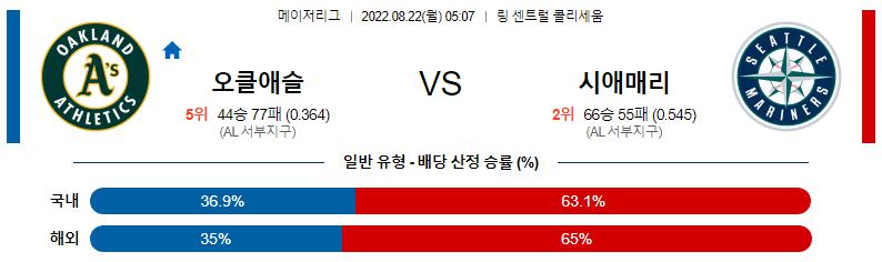 8월 22일 05:07 MLB 오클랜드 : 시애틀