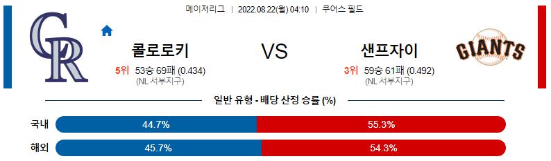 8월 22일 04:10 MLB 콜로라도 : 샌프란시스코