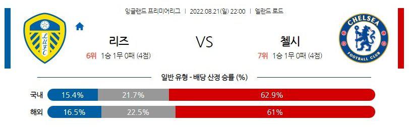 후술하겠지만, 첼시는 투헬 감독의 뛰어난 전술과 함께 시즌 초반에 좋은 경기력을 보여주고 있다. 다만, 최전방 전력들의 득점력 문제는 여전한 상태. 여기에 리즈도 이번 시즌 마치 감독의 온전한 풀시즌으로, 색채가 점점 입혀지고 있다. 특히, 새롭게 영입한 전력들도 빠르게 팀에 적응하고 있으며 두 경기 연속 멀티 득점을 터뜨리는 등 득점력도 갖추고 있다. 기본적으로 첼시의 승리를 예상하지만, 리즈의 홈 어드밴티지와 최근 경기력을 고려하면 한 골 정도의 만회 가능성은 있겠다. 핸디캡 무승부(H+1.0)를 예상한다.
