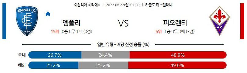 【세리에A】 8월22일 엠폴리 vs 피오렌티나
