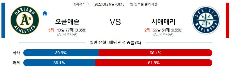 열람중 8월 21일 08:15 MLB 오클랜드 : 시애틀 MLB분석 2022.08.21 215
