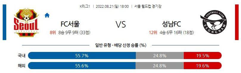 양 팀의 최근 4차례 경기 중 3번의 언더(2.5 기준)가 나온 점을 고려하면 이번 일정도 언더(2.5 기준) 가능성이 높겠다. 또한 서울은 최근 주장단을 교체하며 분위기를 바꾸기 위해 노력을 기울였고, 직전 경기에서 김천을 잡아내며 결과로 보여줬다. 특히나, 일류첸코 영입 이후 득점력이 상승한 모습. 반면 성남은 최근 기본적인 패스 하나에도 어려움을 겪고 있는 상태로, 김남일 감독도 이에 대한 답답함을 드러냈다. 전체적인 선수 퀄리티가 매우 떨어지는 편. 이번 일정도 서울의 승리가 예상된다.