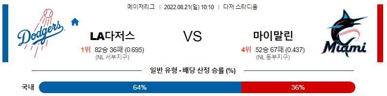 8월 21일 10:10 MLB LA다저스 : 마이애미 MLB분석
