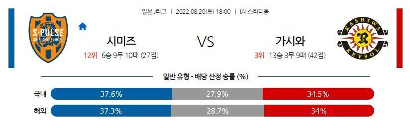 【J리그】 8월20일 시미즈 에스펄스 vs 가시와레이솔