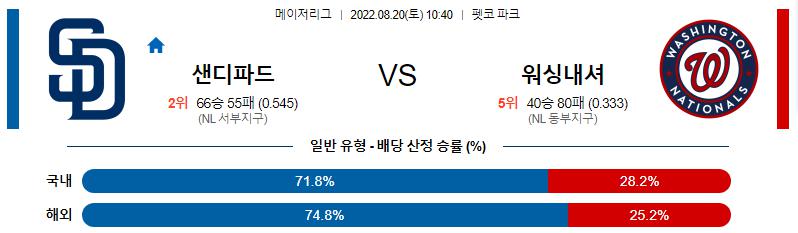 샌디의 승리를 본다. 스넬은 최근 머스그로브와 다르비슈, 클레빈저의 우완 트리오보다 확실하게 본인의 경기를 책임지는 에이스 역할을 하고 있습니다. 0점대 방어율을 뽐내는 최근인데 96마일의 포심과 88마일의 체인지업, 커브등을 뿌리며 타자를 압도하고 있습니다. 에스피노 상대로 맞대결 연승을 기대할만 하다. 워싱턴의 빈타 속에 언더 경기다.