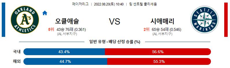 8월 20일 10:40 MLB 오클랜드 : 시애틀 MLB분석