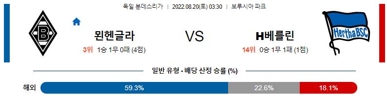 독일 분데스리가 8월 20일 03:30 묀헨글라트바흐 : 헤르타 베를린
