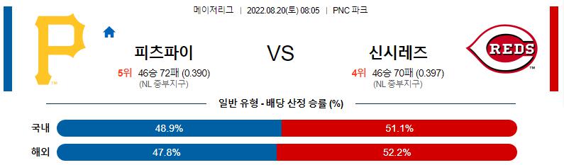8월 20일 08:05 MLB 피츠버그 : 신시내티 MLB분석