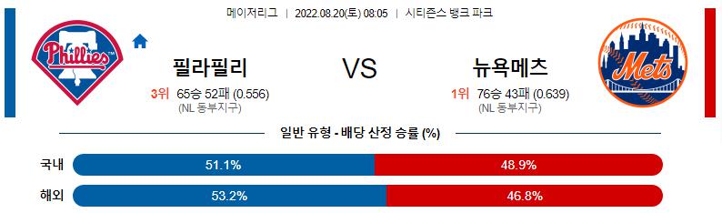 8월 20일 08:05 MLB 필라델피아 : 뉴욕 메츠 MLB분석