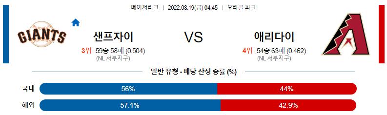 8월 19일 04:45 MLB 샌프란시스코 : 애리조나 MLB분석