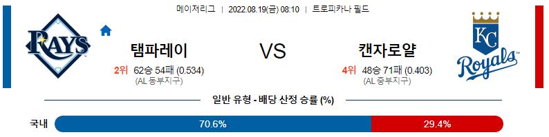 8월 19일 08:10 MLB 탬파베이 : 캔자스시티 MLB분석