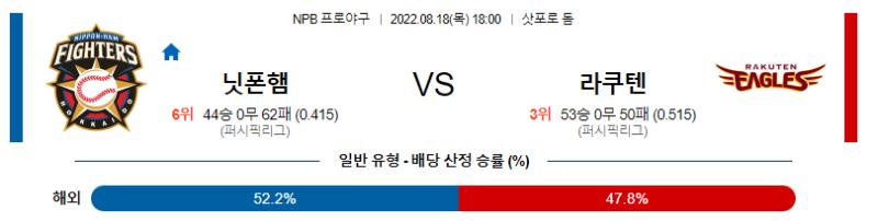 분명 이토 히로미는 좋은 공과 제구를 가지고 있는 투수지만 멘탈에 따라 너무 심하게 경기가 움직이는 문제가 있습니다. 게다가 포수를 멋대로 갈아치우고 있는 신죠 빅보스의 최근 성향상 포수와 호흡 문제가 불거질 가능성이 높은 편. 게다가 닛폰햄의 타선은 득점권에서 집중력 문제가 계속 불거지고 있는 반면 라쿠텐은 전날 경기에서 좌타자들이 확실하게 영점을 잡아냈다. 기세에서 앞선 라쿠텐 골든 이글스가 승리에 가까이 있습니다.