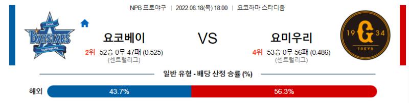 8월 18일 18:00 NPB 요코하마 : 요미우리