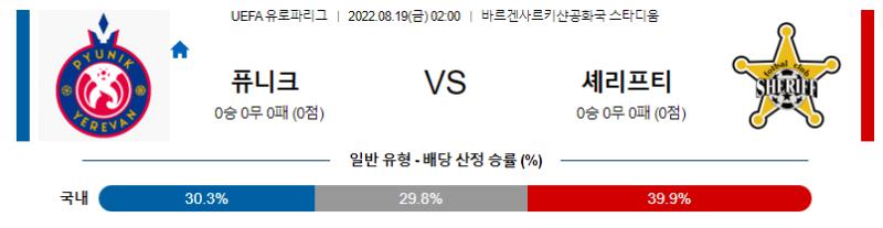 UEFA 유로파리그 8월 19일 02:00 퓨니크 : 셰리프