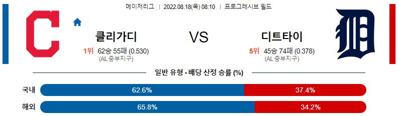 8월 18일 08:10 MLB 클리블랜드 : 디트로이트 MLB분석